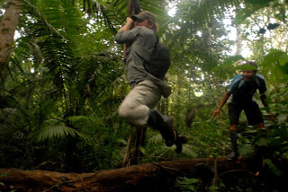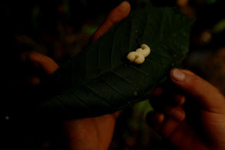 Swinging on jungle vines, sampling jungle fruits and eating grub, literally. I guess Eric and I both came into this trip with the goal of having an open mindset to trying new things. We found out quickly that the jungle provided many opportunities to test ours. Bananas are grown all over this region. I haven´t eaten a banana in twenty odd years. As a kid my mom used to cut up brown bananas on my cereal doing her best to remove the bad parts but by then the whole fruit was a discusting slimey mess and visions of vomit soon followed. I vowed never to eat them again. But they say time is a healer. After constant badgering from Eric, I finally tried a piece. Well…it didn´t kill me but the jury is still out on that subject. Some things came easily like drinking water out of cut vines. Our guide introduced us to a lot of plants and things that could be consumed if one where so inclined. But when he provided us with a leaf full of maggots, well somehow I just found myself a bit hesitant. But when in Rome. Think luke warm tapioca pudding in a rubber shell and you are in the ball park of the taste experience of these little jungle delicacies.